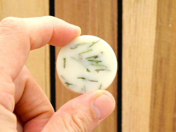 Cire de colza , essence parfumée (Savon de Marseille), végétaux (Urtica dioica, Olea europaea, Salvia rosmarinus).