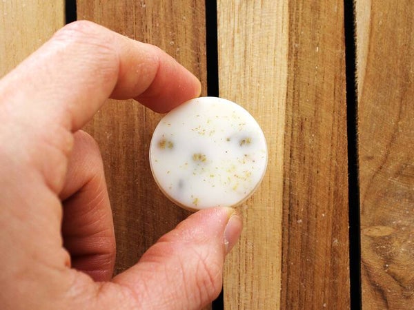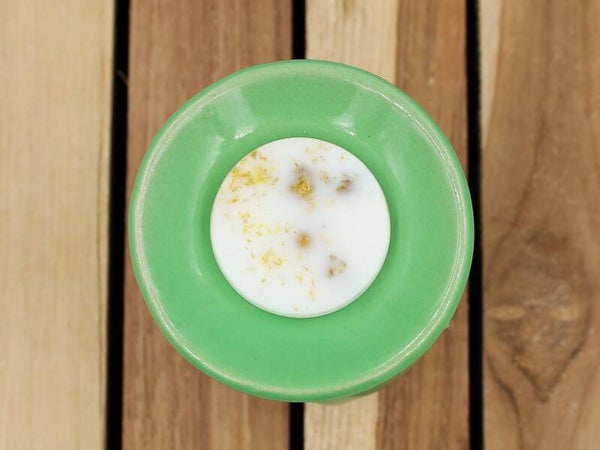 Cire de colza , essence parfumée (Camomille), végétaux (Chamaemelum nobile).