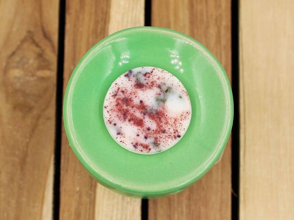 Cire végétale de colza , essence parfumée (Verveine, Orange sanguine), végétaux (Rubus idaeus, Beta vulgaris).