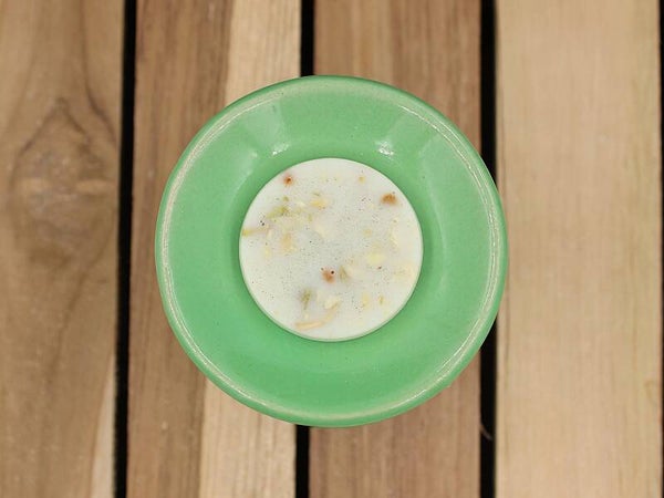 Cire de colza , essence parfumée (Oliban Jasmin Vétiver), végétaux (Jasminum, Urtica dioica, Vetiveria, Pollen).