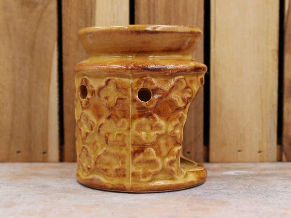 Un brûle-parfum décoratif en céramique, permet un éclairage tamisé et une diffusion douce des parfums grâce à la chaleur du chauffe-plat. La coupelle accueillera une cire parfumée ou quelques gouttes d'huiles essentielles diluées dans un peu d'eau.